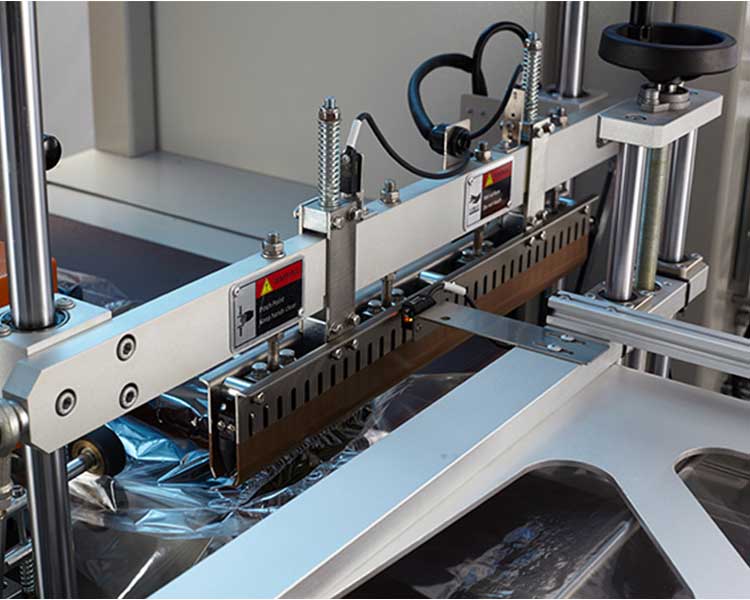 自主調節(jié)高度 封口高度可調整,當包裝物尺寸變更時,通過手輪轉動調節(jié)包裝尺寸,調整非常簡單,不 用換模具與制袋器;